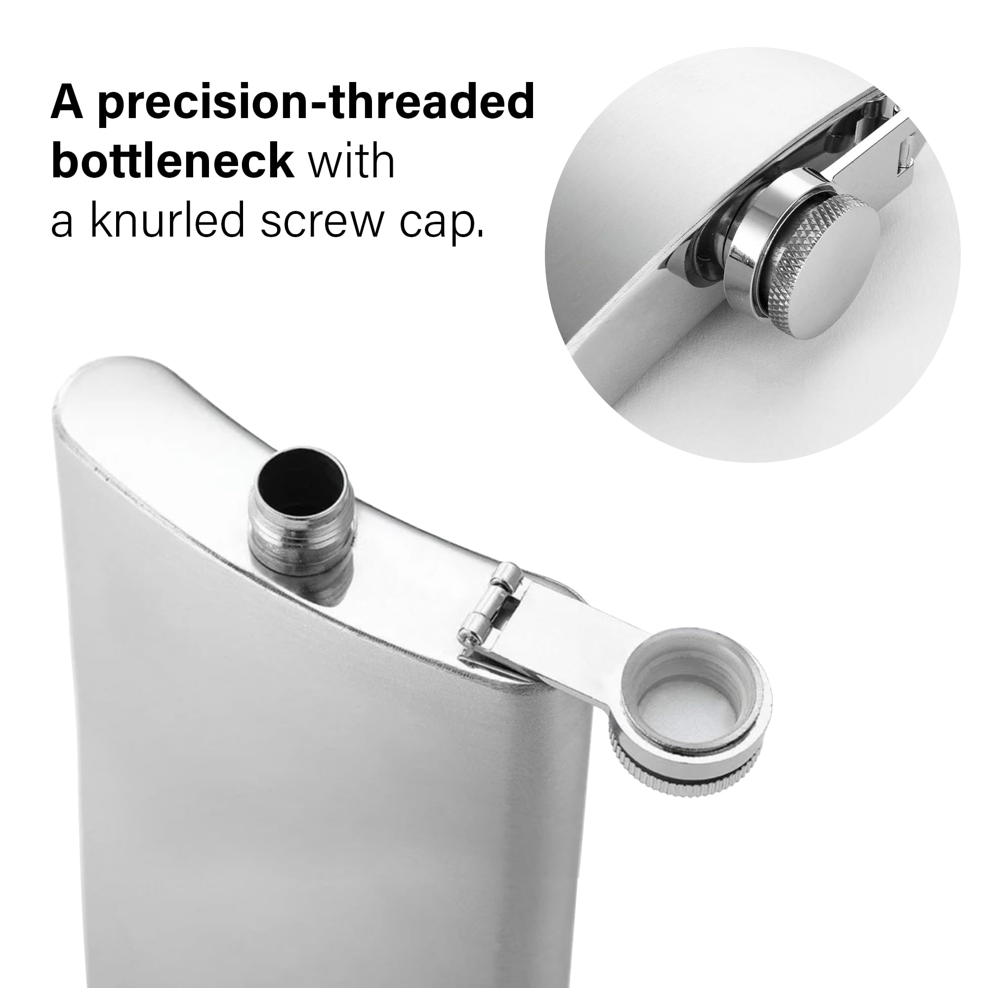 - 100% Leak-Proof: The stainless steel screw-down cap is securely attached to the flask body, forming a tight, secure seal that prevents any leaks. Your favorite liquor stays exactly where it belongs.
